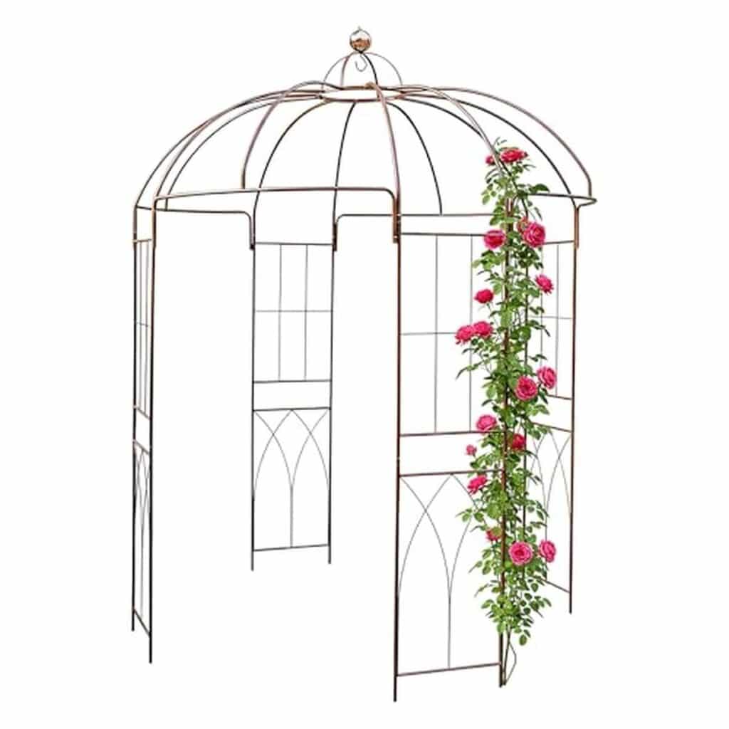 La tonnelle à roses en métal marron rouille de Spetebo s’impose comme un magnifique élément de